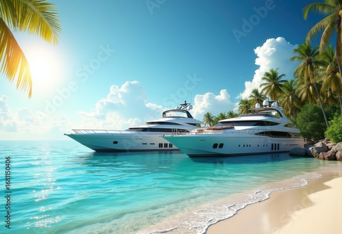 exquisite luxury yachts anchored crystal clear waters serene beach paradise scenic ocean view, sea, marine, coast, harbor, scenery, nature, landscape, serenity