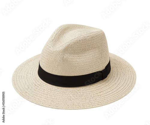 Exquisite Panama Hat, A Lucid Realism Depiction of Intricately Woven Straw with a Classic Black Band Displayed