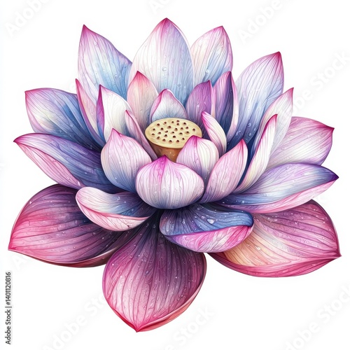 Exquisite Pink and Blue Lotus Flower with Delicate Petals and Water Droplets Captured in Vibrant Colors for Nature Lovers