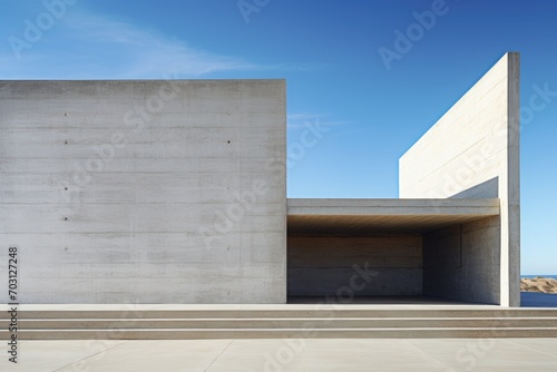 Exterior of modern architecture, concrete wall and blue sky background, Modern architecture featuring an empty concrete wall, AI Generated