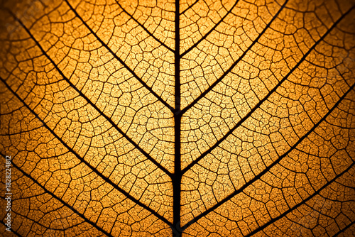 Extreme Close-up of Golden Leaf Veins and Structure with Backlit Detail