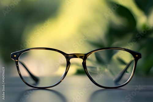 eyeglass, goggles, eyewear, spectacle, vision, reading, sharpened, blur, blurred, green, foliage, plant, tabletop, surface, brown, round, frame, clear, lens, optical, accessory, style, fashion, closeup, still life, outdoors, sunlight, light, eyecare, health, well-being, sight, prescription, modern, design, elegant, macro, sunglasses, isolated, black, eye, glasses, object, white, sun, eyesight