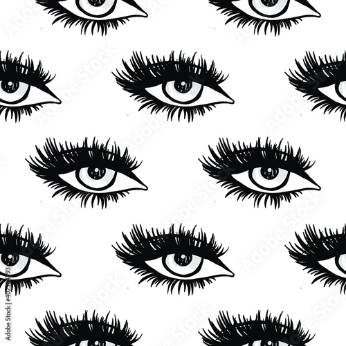 eyes Vector seamless pattern. eyes background. Repeat fashion illustration for girls, woman, fabric, t-shirt print, wrapping. Makeup design.