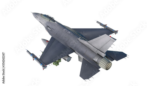 F -16 , american military fighter plane.Jet plane. Fly in clouds. 3d rendering