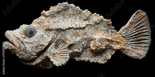 f a stonefish’s textured skin, highlighting its rough, coral-like appearance