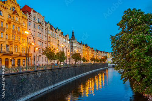 Facade of buildings on Vltava riverside in Prague, Czech republi