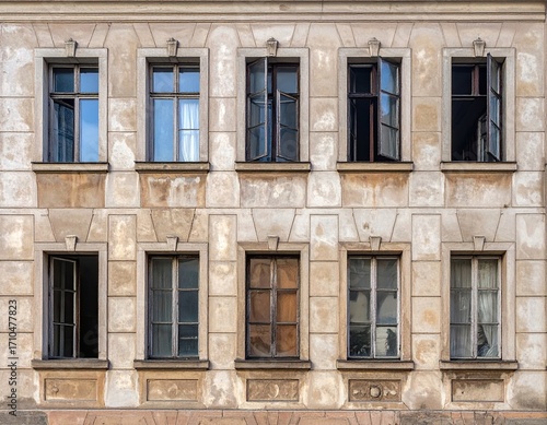 facades, building, window, architecture, weathered, concrete, texture, exterior, old, vintage, shutter, open, close, grunge, aged, decay, structure, wall, stone, surface, rough, detail, pattern, urban, construction, design, renovation, architectural, brick, historical, framework, residential, rustic, row, symmetric, panel, daylight, neutral