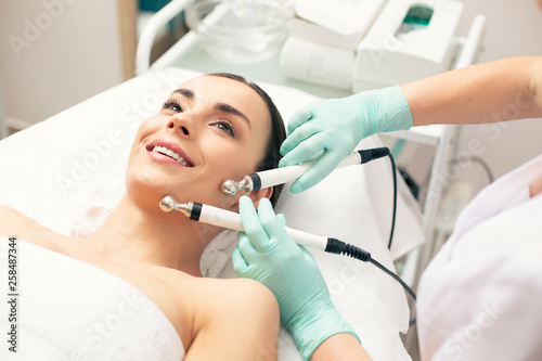 effective, dermatologist, face-lift, procedure, appearance, cheerful, medicals, salon, beautician, equipment, stimulation, closeup, indoor, pleased, face, prong, skin, smile, spa, treatment, care, glove, beauty, relaxed, therapy, happy, clinic, hand, rubber, woman, rejuvenation, adult, young, glad, positive, female, cosmetologist, healthy, facial, tool, professional, metal, safe, electrical