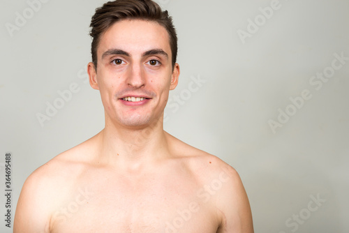 shirtless, muscular, body, fit, man, photogenic, young, people, portrait, studio, shot, isolated, white, background, person, caucasian, male, man, guy, adult, attractive, sexy, brunet, brown, blond, hair, casual attire, fitness, healthy, abs, strong, happy, happiness, smile, smiling, closeup, head, face
