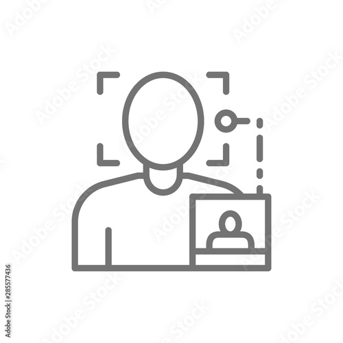 Face search by photo, biometric identification line icon.