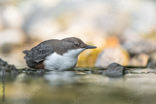 Face to face with aquatic bird, the Dipper (Cinclus cinclus)