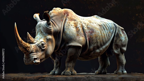 rhino, rhino, powerful, majestic, wild, nature, wildlife, mammal, advanced technology, realistic, endangered species, conservation, african wildlife, savanna, safari, animal kingdom, digital artwork