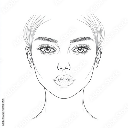 Facial Features Illustration: A refined line drawing showcasing a woman's face, perfect for beauty guides, makeup tutorials, and cosmetic artistry.