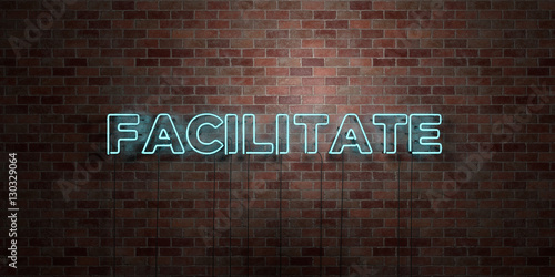 FACILITATE - fluorescent Neon tube Sign on brickwork - Front view - 3D rendered royalty free stock picture. Can be used for online banner ads and direct mailers..