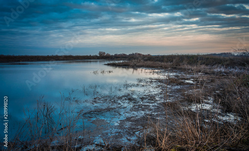 nature, landscape, faded, summer, autumn, fall, morning, dawn, water, dew, fog, mist, field, meadow, lake, river, duck pond, grass, leaf, sky, cloud, plant