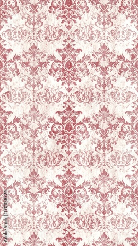Faded Red and White Damask Pattern with Distressed Texture for Elegant Wallpaper Backdrop Design