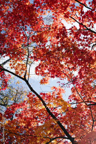 autumn, tree, fall, leaf, red, nature, leaf, sky, forest, yellow, season, tree branch, maple, hokkaido, blue, tree, japan, travel, colours, park, colourful, bright