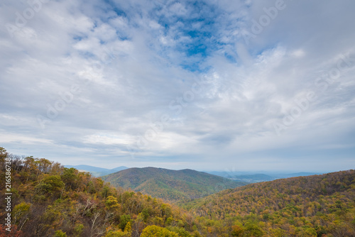 Fall color and Blue Ridge Mountains view from Skyline Drive in Shenandoah National Park, Virginia