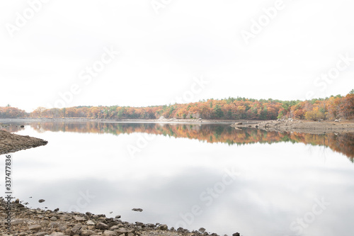 lake, water, landscape, sky, nature, river, blue, view, cloud, winter, outdoors, cloud, tree, sunset, tree, autumn, scenic, grass, countryside, duck pond, snow, panorama, scenery, fall, red, yellow, orange, brown, leaf, foliage, new england, colours, massachusetts, wood, forest