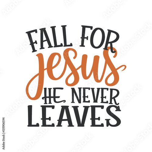 Fall for Jesus he never leaves, typography design, and Jesus Christ t-shirt design vector