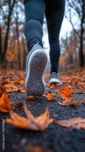Fall morning hike, scenic trail, vibrant colors, dynamic action