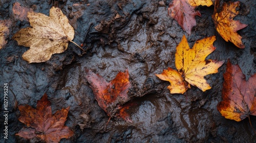 leaf, fall, autumn, orange, yellow, brown, red, mud, dirt, ground, nature, foliage, wet, damp, timberland, forest, season, colours, pattern, texture, plant, tree, leaf, macro, detail, natural, vibrant, decay, decompose, weather, environment, earth, landscape, scenery, background, surface, organic, wilderness, beauty, colourful, scenic, still life