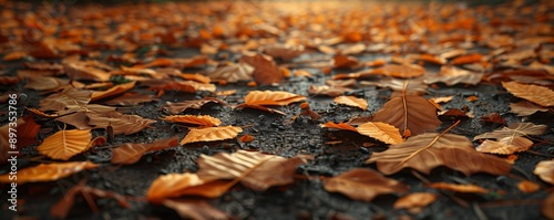 Fallen Autumn Leaves on Ground Background, 4K hyperrealistic photo