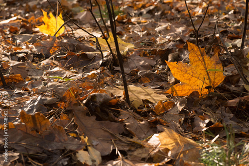 fallen maple leaves closeup selective focus