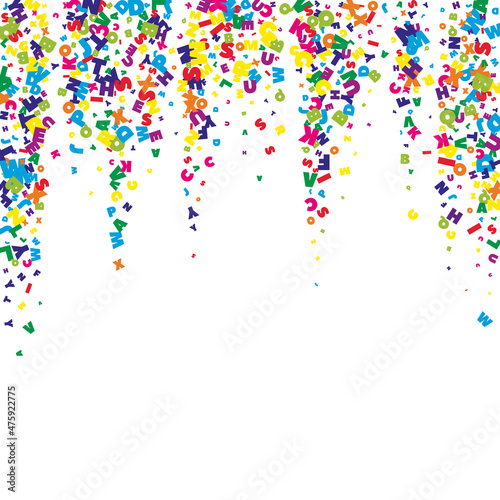 Falling letters of English language. Vivid flying words of Latin alphabet. Foreign languages study concept. Unusual back to school banner on white background.