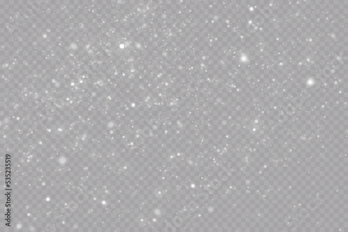 Falling snow.Christmas background.Snow blizzard.Transparent background.Light effect.