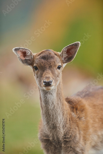 outdoors, day, closeup, detail, brown, portrait, stare, standing, cervid, staring, doe, german, bavaria, eye contact, copy space, captivity, animal, wildlife, head, hair, vertical, one animal, color image, face, blurred background, fallow deer, no people, animal head, front view, half-length