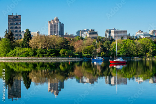 vancouver, spring, creek, red, blue, green, jog, sailboat, city, urban, bay, beautiful