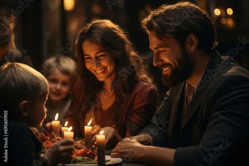 Family Candlelight Dinner: Joyful family moment, intimate celebration, warm festive gathering