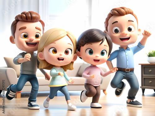 Family dancing together in the living room candid expressions of happiness copy space on bottom. concept as A joyful family dancing together in the living room capturing candid expressions of happines
