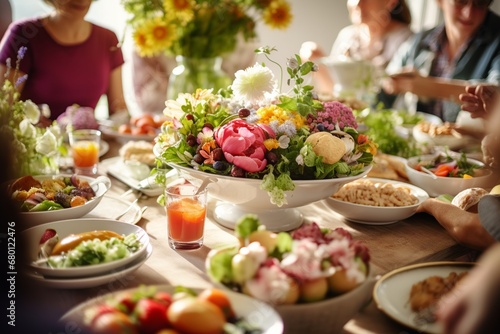 spring flower, springtime, floral arrangement, easter egg, heartwarming, family time, family, eating, food, people, christmas, thanksgiving, daughter, easter, lunch, table, meal, home, holiday, grandmother, woman