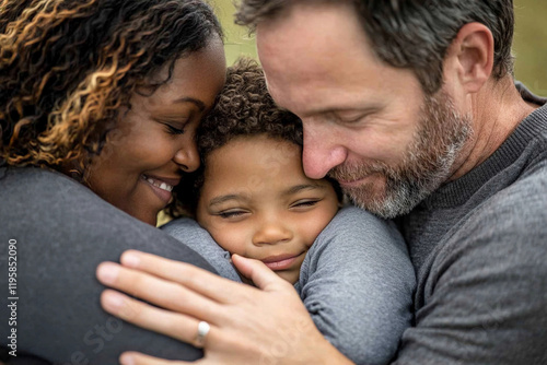 Family embracing in a warm moment of togetherness in Greenland's beautiful setting