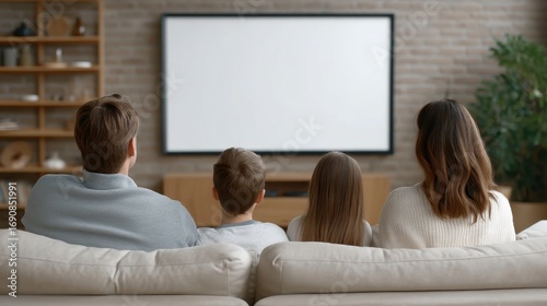 Family Enjoying Quality Time Together While Watching TV in Cozy Living Room with Modern Interior Design and Neutral Color Palette