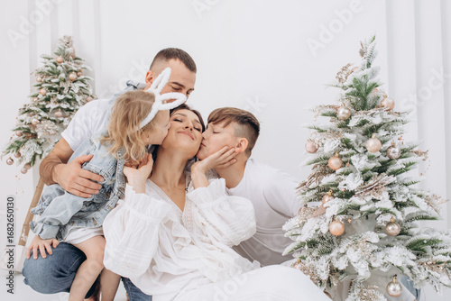 copy, interior, wife, christmas eve, brother, sister, cheerful, children, son, caucasian, light, background, new, tree, stylish, fun, father, people, human relationships, smile, portrait, studio, female, decoration, daughter, family, childhood, new year, children, holiday, happy, father, man, boy, winter, male, girl, present, brother, christmas, children, together, mother, togetherness, christmas tree, woman, lifestyle, home