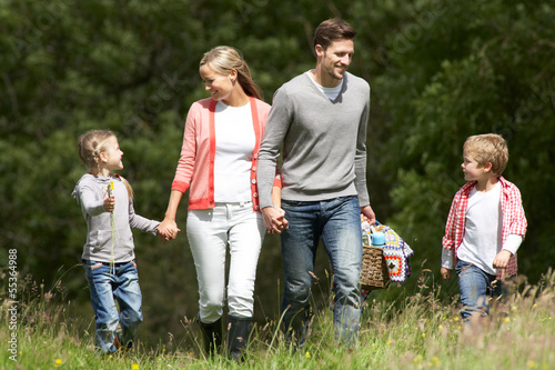 picnic, basket, hamper, carrying, countryside, northumberland, hiking, hike, walk, walking, britain, adult, outdoors, fit, healthy, active, exercise, exercising, recreational pursuit, nature, rural scene, beautiful, summer, happy, smiling, field, grass, father, son, mother, daughter, eltern, horizontal, together, blanket, rug, family, woman, woman, children, children, boy, girl, man, caucasian, 20s, 20s, four people
