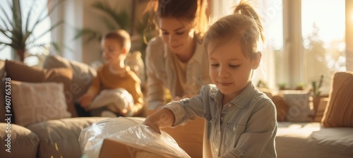 family, teamwork, excitement, living room, furniture, unpack, children, mother, father, home, decoration, interior design, lifestyle, domestic, children, collaboration, cosy, modern, sunlit, bonding, togetherness, warmth, parenting, home improvement, happy, loving, household, stylish, elegant, unpack, family time, arranging, organizing, supportive, joyful, wood