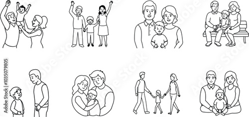Family Illustrations: Line Art Depicting Love, Joy, and Togetherness