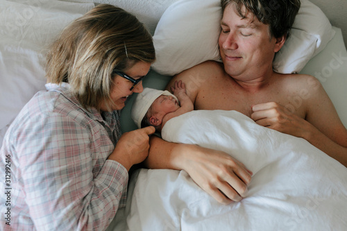 eltern, mother, father, baby, family life, children, family, domestic life, love, people, bed, time, newborn, sibling, feeling, closeness, morning, kindergartner, adult, indoor, woman, smiling, man, togetherness