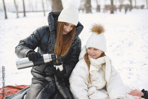 snow, cold, mother, family, winter, daughter, hat, park, holiday, children, nature, eltern, toddler, white, young, mother, fun, outside, childhood, children, girl, jacket, people, outdoors, baby, knit up, christmas, little, blanket, grey, warm, plaid, knitwear, pant, sport, lifestyle, caucasian, season, female, woman, mitten, clothes, background, sitting, thermos, tea, drink