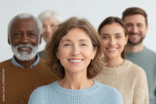 family members of diverse backgrounds seated together sharing joyful moments in neutral clutter-free surroundings