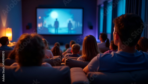 Family Movie Marathon: Engaging Film Lineups & Inviting Home Theater Ambiance for Memorable Cinematic Experiences - Perfect for All Ages - Photo Stock Concept