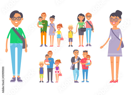 Family people adult happiness smiling group togetherness parenting concept and casual parent, cheerful, lifestyle happy character vector illustration.