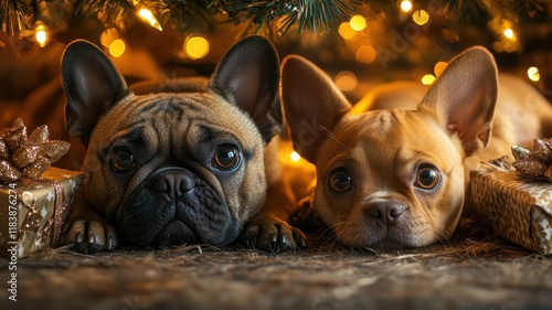 Family pets relaxing under a tree during the holiday season cozy indoor setting heartwarming scene
