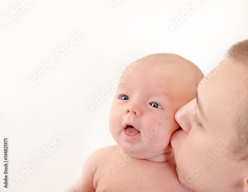 family portrait of father kissing her little cute baby