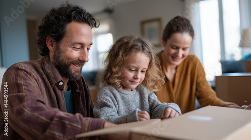 family, unpack, joy, home, laughter, sunlight, box, cosy, children, toy, hope, colours, living room, warmth, smile, transition, cardboard, paint, childhood, decor, relocation, joyful, bright, comfortable, living, emotional, bonding, community, optimism, connection, memory, celebration