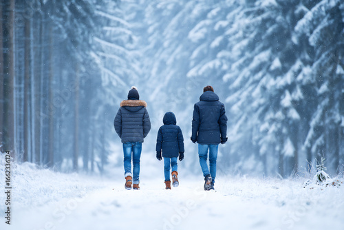 family, walking, snowy, forest, winter, coat, outdoors, nature, snow, cold, together, tree, lifestyle, people, warm, happy, active, season, adventure, casual attire, bonding, natural, parenthood, human relationships, children, seasonal, leisure, holiday